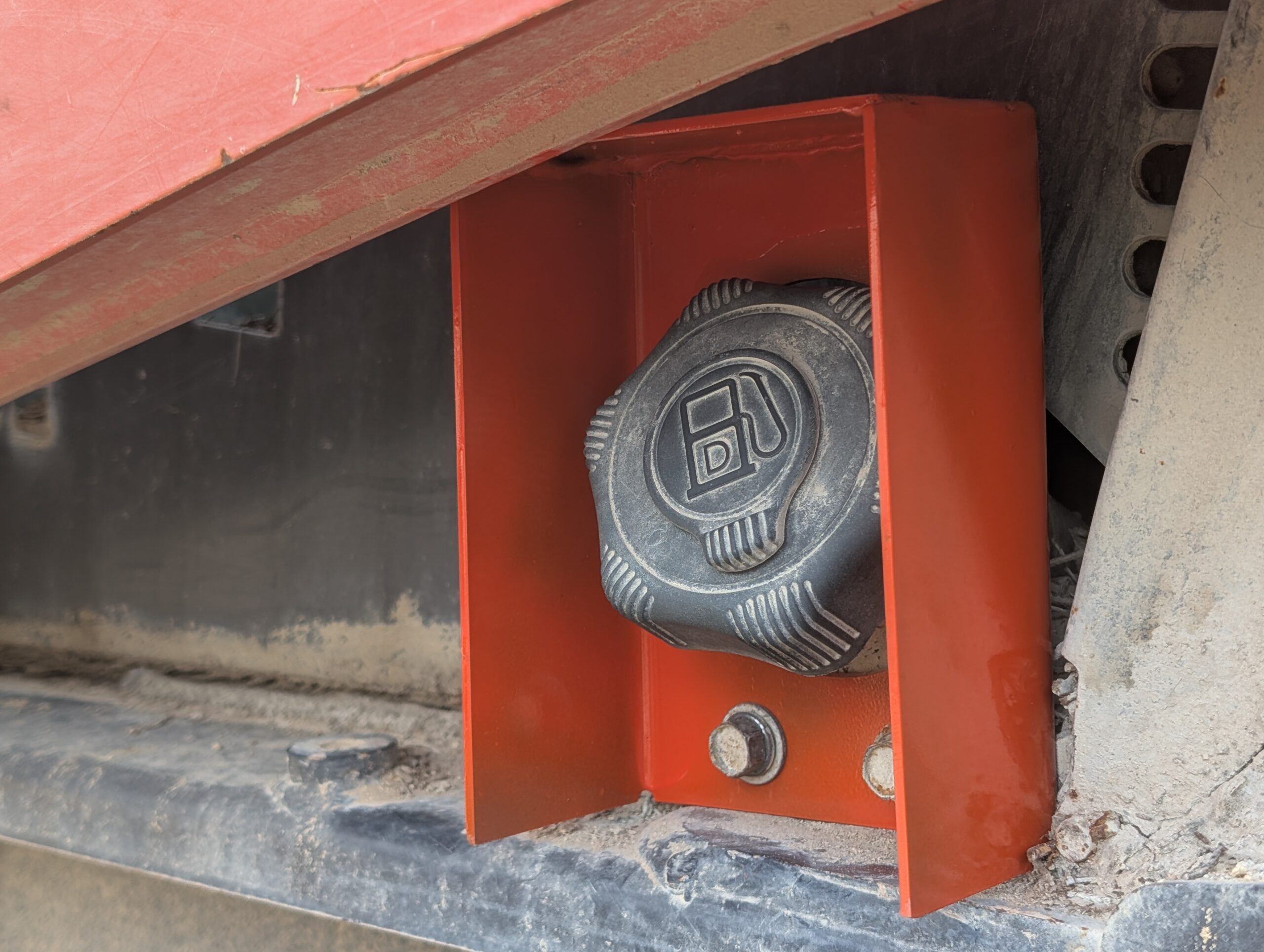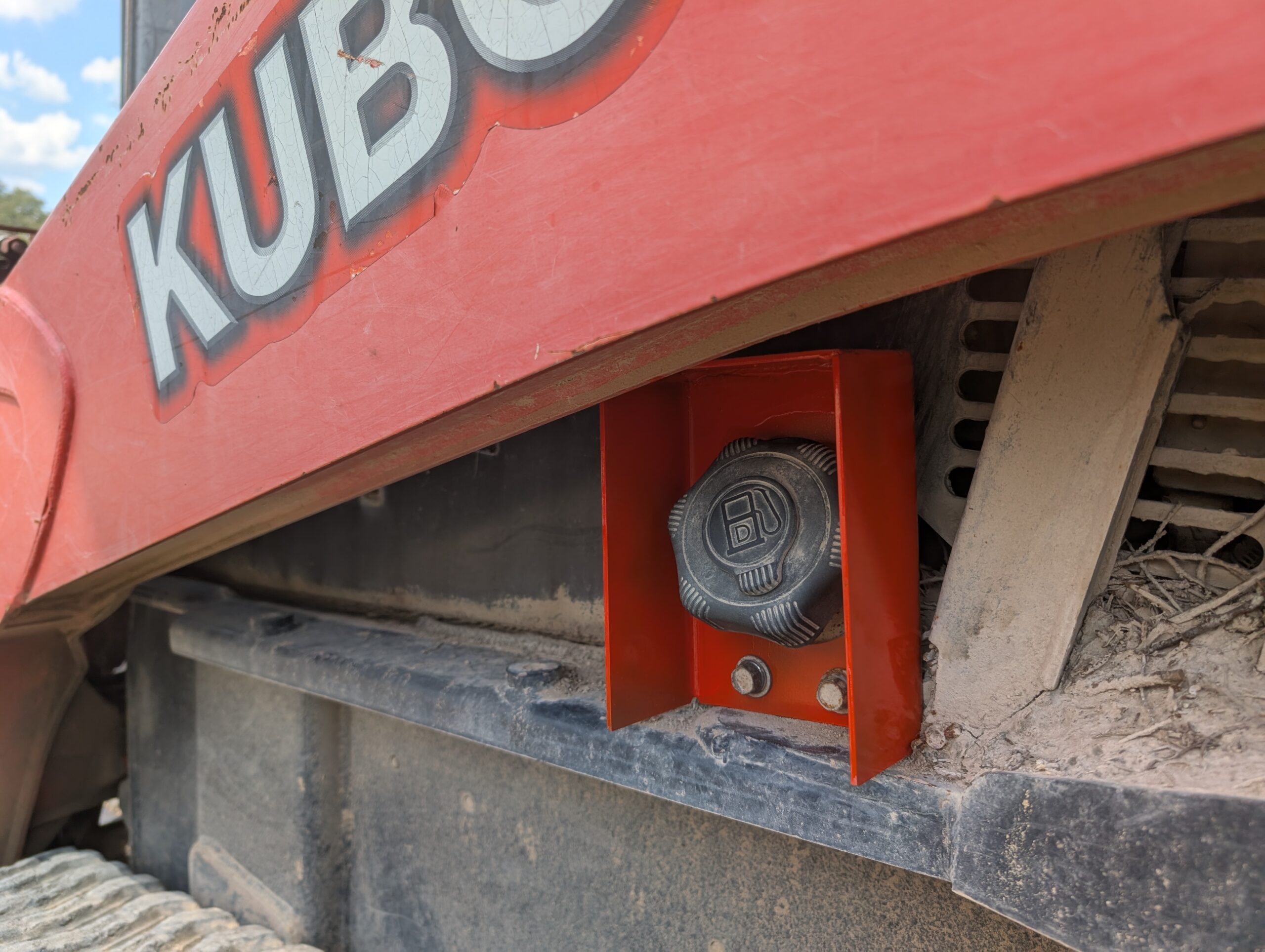 Bolts over the fuel filler neck and cap using the existing bolts. Protects the cap from being damaged or removed by brush when working in forested areas. Constructed out of 1/8″ steel and powder coated for strength and durability.